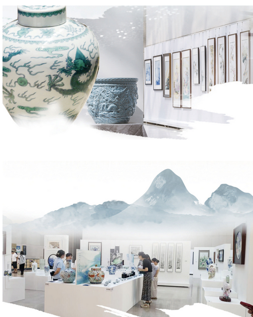 走出特展厅,与之呼应的一楼中庭,则以开放式展陈打破传统,300余件(套)当代艺术陶瓷作品在此展览。瓷板画、日用瓷、国礼瓷、仿古瓷分区陈列,既有国家级陶瓷大师及省级陶瓷大师的精心之作,亦有青年艺术家对传统技艺的重新解构。展厅内,市民或驻足品评,或探讨询价,艺术与生活在此交融。