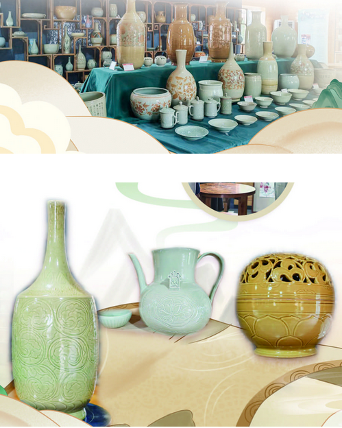 在这些珍贵实物与考古成果的指引下,陶正生成功仿烧出多种经典器型的沙埠青瓷,包括熏炉、粉盒、孔明碗、葵花碗、鱼鳞碗等。而更令他激动的是,那些童年时代在山坡碎瓷片中反复摩挲却始终模糊残缺的纹样——诸如龙凤纹、婴戏纹、鹦鹉纹、莲花纹、云纹、水纹、牡丹纹等典型纹饰,也终于在这一刻得以完整复刻、清晰再现。此外,他还成功复原了青黄釉、酱釉、翠青釉等一系列标志性的历史釉色,使沙埠青瓷的古韵新颜交相辉映。