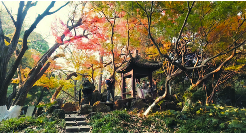在众多赏枫者中,特意前来拍摄写真的市民柯柳多显得格外用心。她一早便约好摄影师,并精心准备了与红枫相衬的妆造,在红枫亭下寻找最佳角度。“最近刚好是红枫的最佳观赏期,机会难得。”柯柳多表示,“我今天特地找了化妆师做专门的妆造,就是想抓住这最美的时节,留下最美的纪念。你看,红枫这么美,衬得人也更美了,感觉特别出片!”像她一样,希望借这片“枫”景记录美好年华、分享喜悦的游客不在少数。