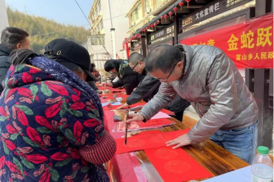为不断提高群众防范邪教意识,丰富群众节日文化生活,营造欢乐祥和的节日氛围,春节临近之际,台州市黄岩区反邪教协会联合黄岩区书法家协会深入西部山区来到上垟乡、宁溪镇、富山乡等地开展“写春联送祝福,反邪教守平安”宣传活动。