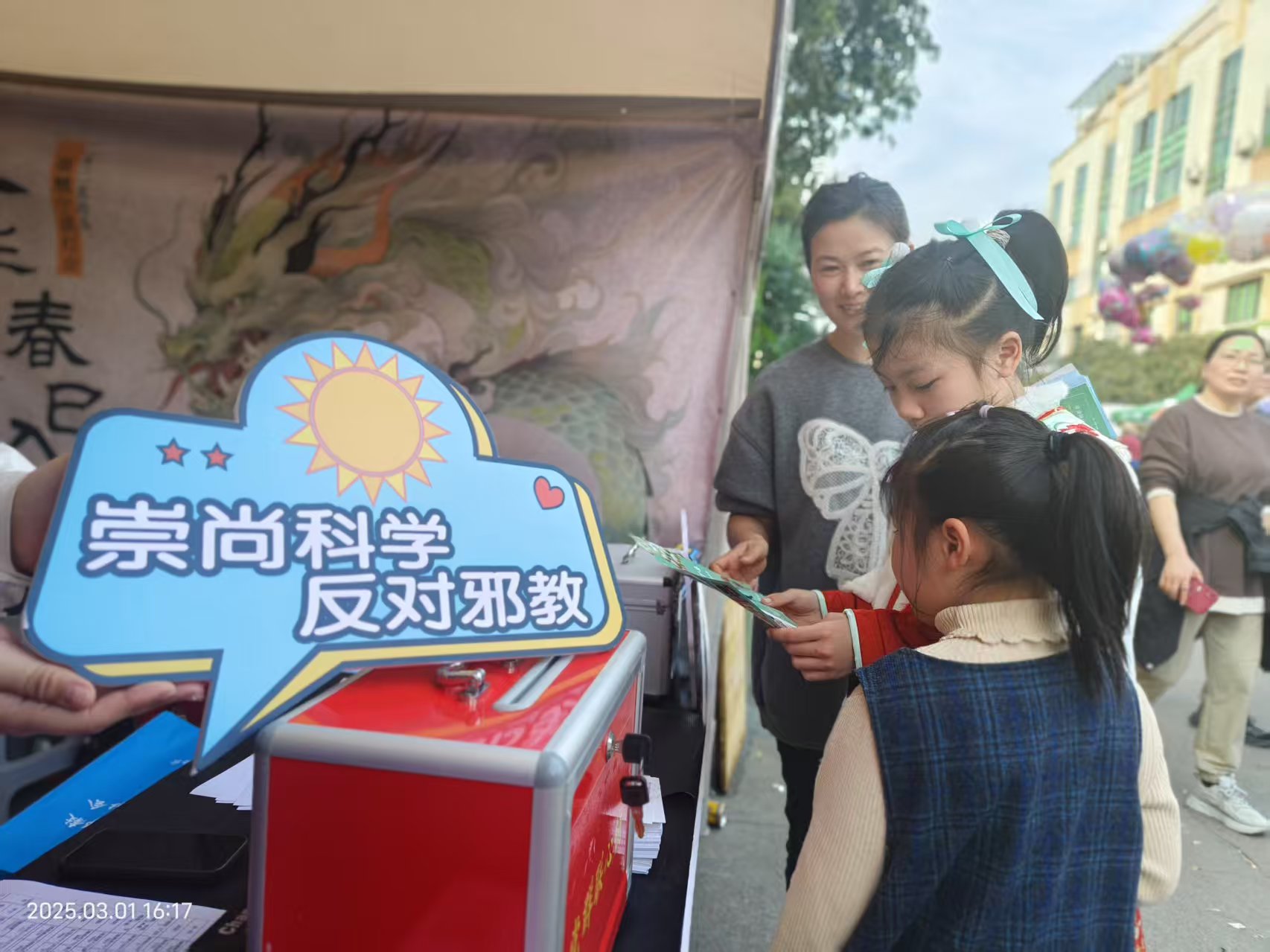 本次活动,还通过现场设立咨询台、发送宣传资料、手牵宣传横幅,向游客普及相关法律法规等开展反邪教宣传。活动共发放反邪教宣传折页、资料、赠品等3000余份。