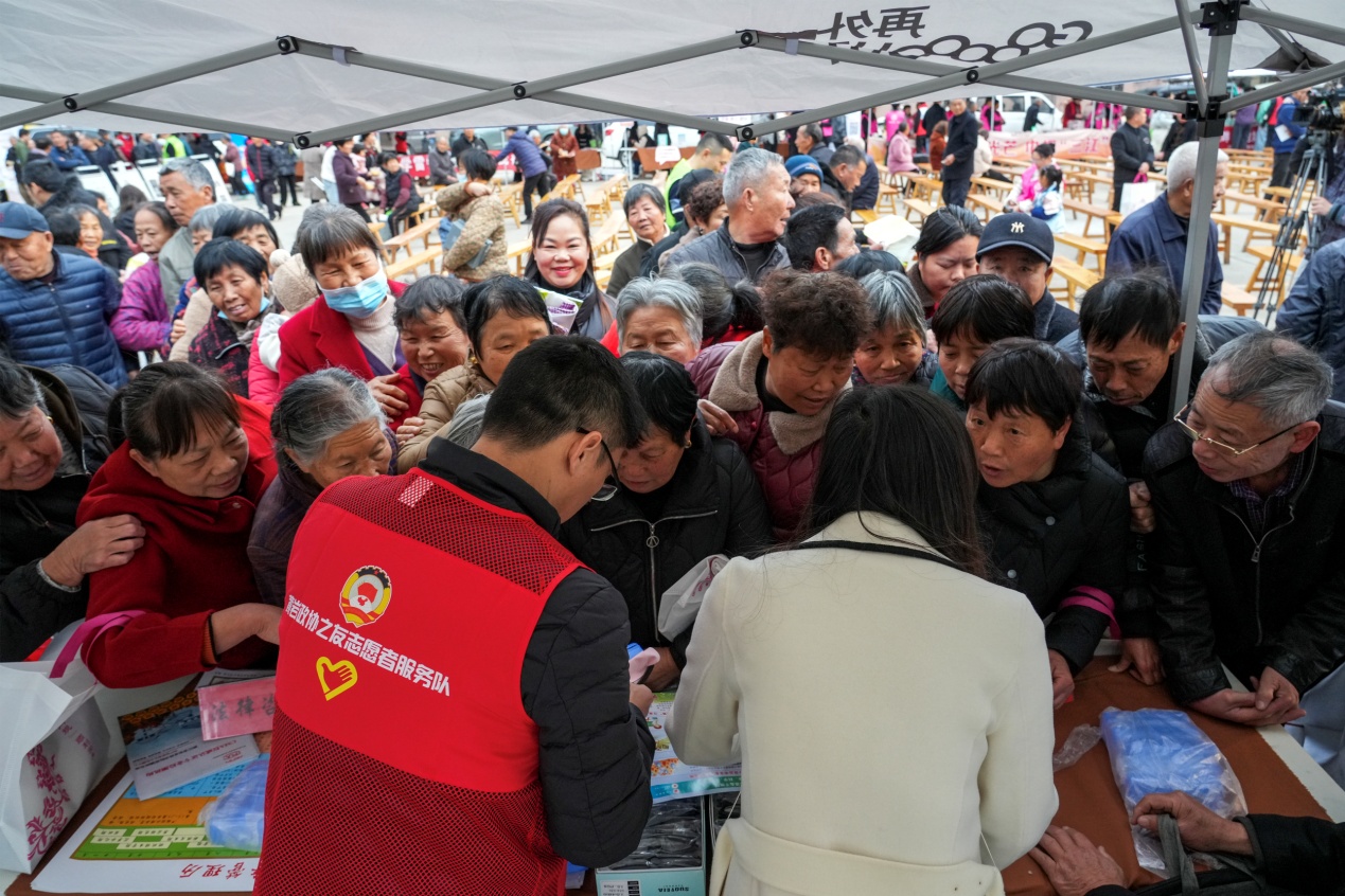 活动现场,志愿者服务队展位齐整排列,健康义诊、安全救援、家庭教育心理咨询、宫颈癌疫苗政策解读……一个个志愿便民服务台前挤满了人群。反邪教志愿者通过设立咨询点、悬挂横幅、展出展板、现场讲解、发放宣传资料、宣传品等形式开展反邪教宣传,吸引众多村民驻足参与,了解邪教的本质和危害,增强对邪教的辨别能力,自觉远离邪教、抵制邪教。当晚,“文艺轻骑兵”优秀节目展演在开场鼓舞《中国龙》中拉开帷幕,精彩节目轮番登场,为村民奉上一场视听盛宴。演出前后及间隙,志愿者向观众发送宣传资料,穿插开展反邪教知识抽摸有奖问答,让广大观众在娱乐中接受反邪教教育。