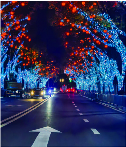 据了解,本次亮化通过“智能控光、节能低碳、动态联动”三位一体的升级,不仅实现了“漂亮”的视觉效果,更以技术手段让传统亮化节电40%以上。区住建局项目管理人员章鑫宇告诉记者:“在灯光的选择上我们选择了这种低功耗的LED柔性光源,运用了防眩光的技术,兼顾行人和行车,在通行安全上,也让本次的整条道路亮而不炫,美而不忧。”