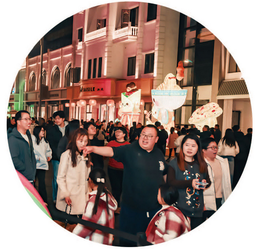 华灯初上,影城广场与青年路一带人流如织。人们或携家带口,或呼朋引伴,从城市的各个角落欣然涌来,不多时,这里便已处处人头攒动,笑语欢声交织一片,洋溢着浓郁的节庆氛围。