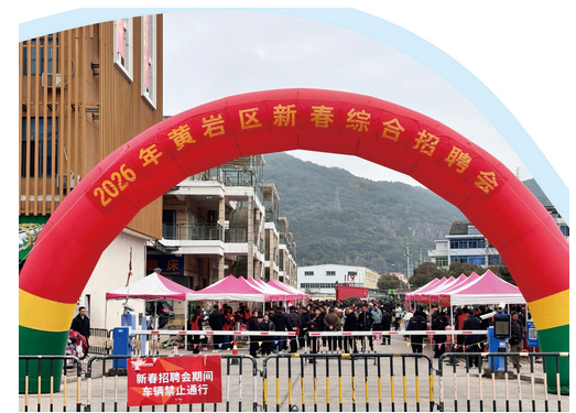 随着春节假期结束,复工复产的号角已然吹响。日前,2026年黄岩区新春综合招聘会在北城模具博览城东门火热开启,另一边,“春风送岗乐业台州”台州西站新春招聘会也同步举办。招聘现场,各类岗位信息琳琅满目,百余家企业携近600个岗位“招贤纳士”,各家企业纷纷亮出“福利牌”,诚意满满,求职者们带着新年的期盼穿梭于各个展位,洽谈声、咨询声交织在一起,奏响了一曲充满希望的就业序曲。从制造业的技术岗位到服务业的基层工种,从返乡人才的“归巢梦”到高校毕业生的“职场第一步”,这场招聘会为求职者和用人单位搭建起新春第一座“连心桥”。