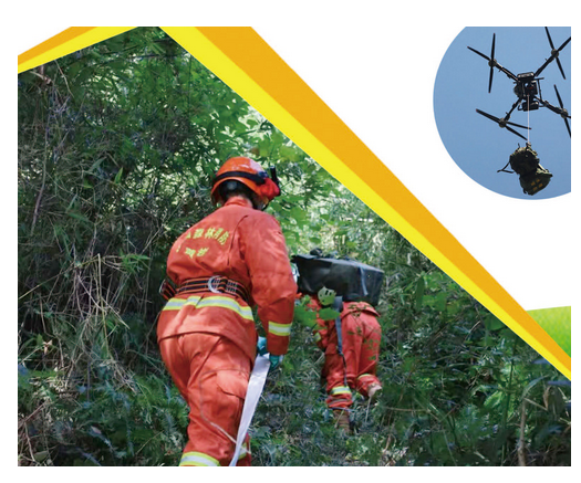 “水带不够长!请求补给!”正当队伍向山顶推进时,新情况出现。前线指挥部迅速启动无人机空投预案,无人机挂载4捆水带升空,快速完成补给保障。
