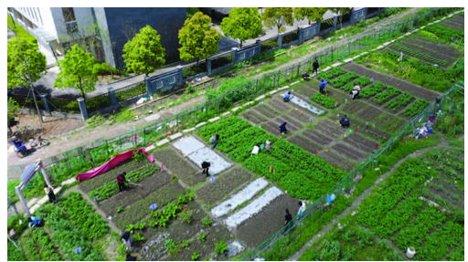 走进“共享菜园”,不少居民正弯腰播种、浇水,有的则拿着锄头松土,化身“都市农夫”,尽情体验种瓜种菜的乐趣。居民池崇德正在打理自己的那一小块菜地,他一边松土一边说:“以前小时候对田园生活就很向往,这一小块地我种了土豆,遇到不会种的时候还能请教农场管理者,他们还会帮忙打理。”