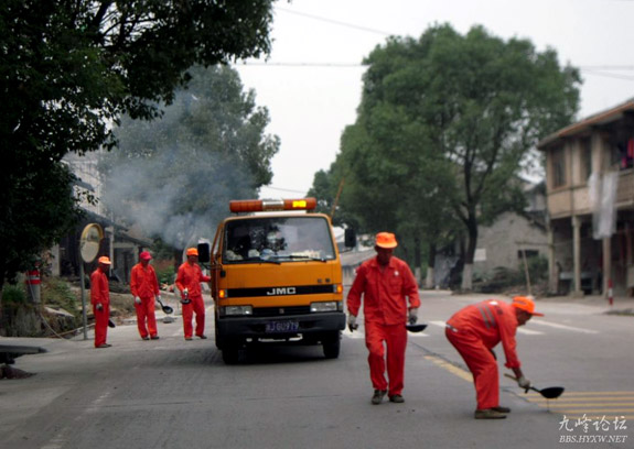 养护工人路面“补妆”忙