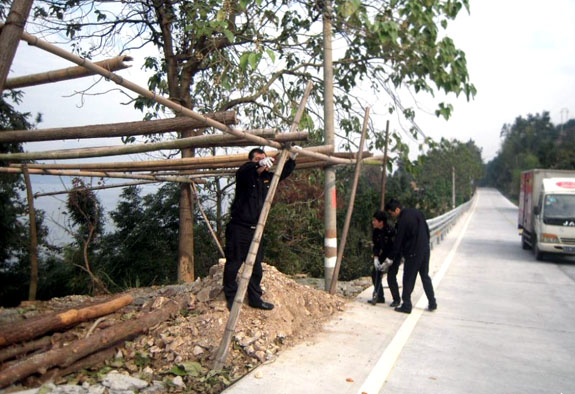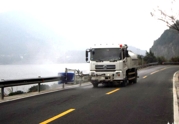 波型防护栏“洗澡”