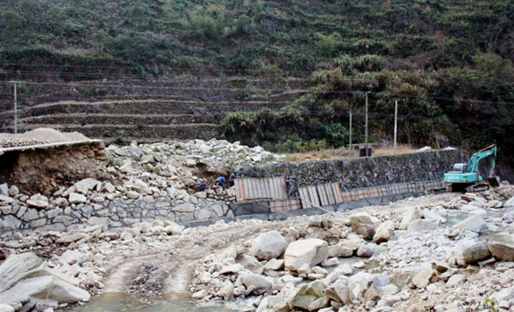 干部群众忙修防洪堤坝