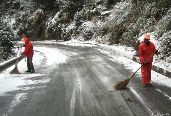 养护工人清扫路面积雪