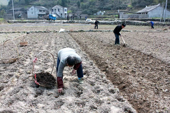 久雨初晴村民忙播种