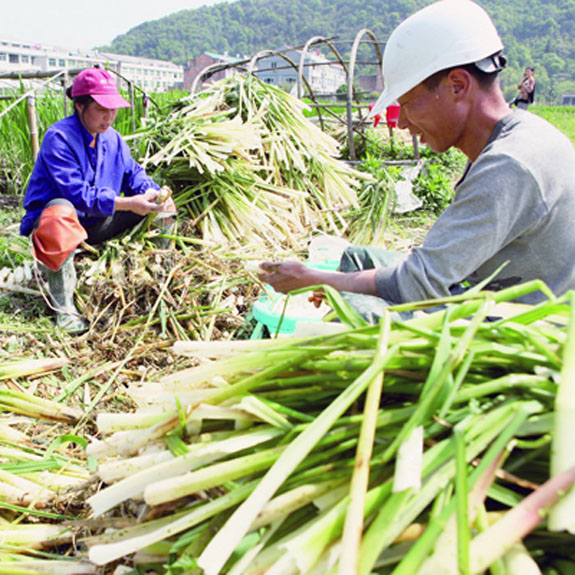农户整理采收茭白