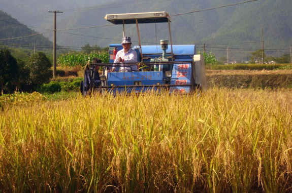 茅畲:农民收割晚稻