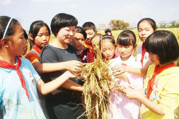 小学生稻田里上“爱粮课”