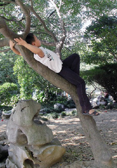 爬树攀高,险!