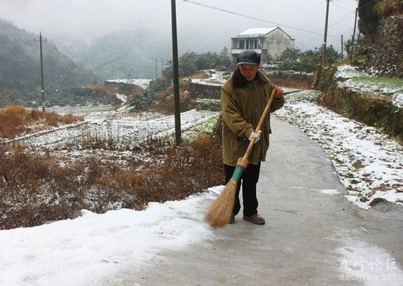 八旬老翁主动扫积雪