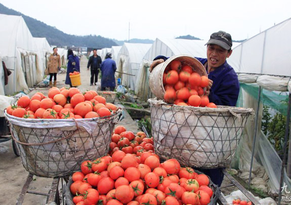 大棚番茄成熟上市了