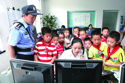 警察叔叔送来“六一”礼物