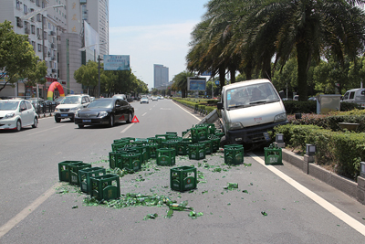为躲横穿者 车入隔离带