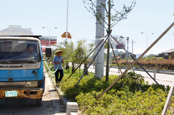 给树木浇水“解渴”