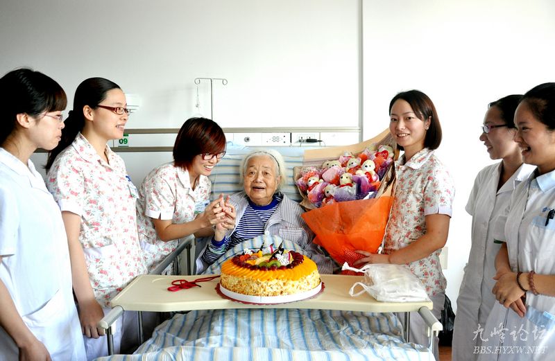 护士为老人庆生 鲜花蛋糕齐送上