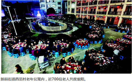 新前街道西范村摆下70桌重阳家宴,邀请全村近700位60周岁以上的老人,共赴一场敬老爱老的秋日盛宴。