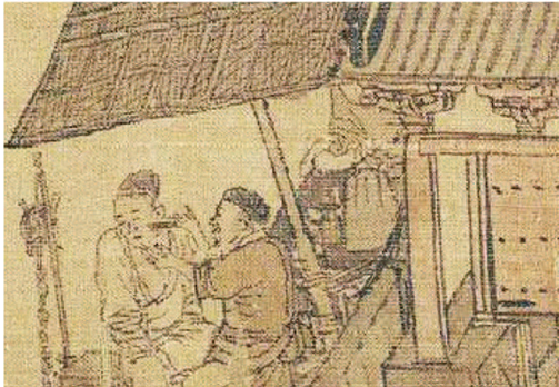 张择端《清明上河图》中剃工为客官刮脸的场景